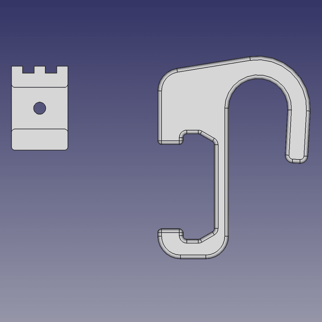 I printed these in regular PLA with 4 walls and 50% infill. The main hook should be printed sideways to avoid stress along the layer lines. Both are designed to print without any supports.